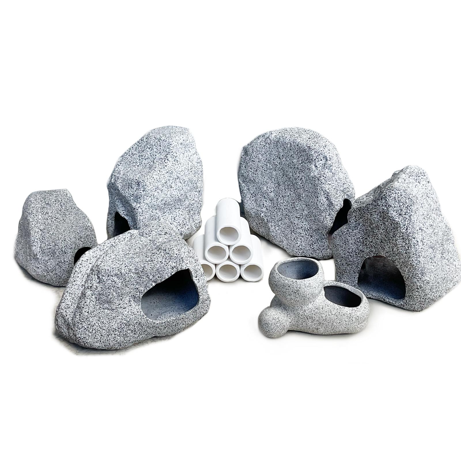 Versatile Arrangement: The assortment includes individual rock shelters with unique contours and stacked ceramic tubes, allowing for endless creative arrangements. Stack them, scatter them, or combine them to build multi-level architectural wonders that cater to the natural instincts of your aquatic pets.